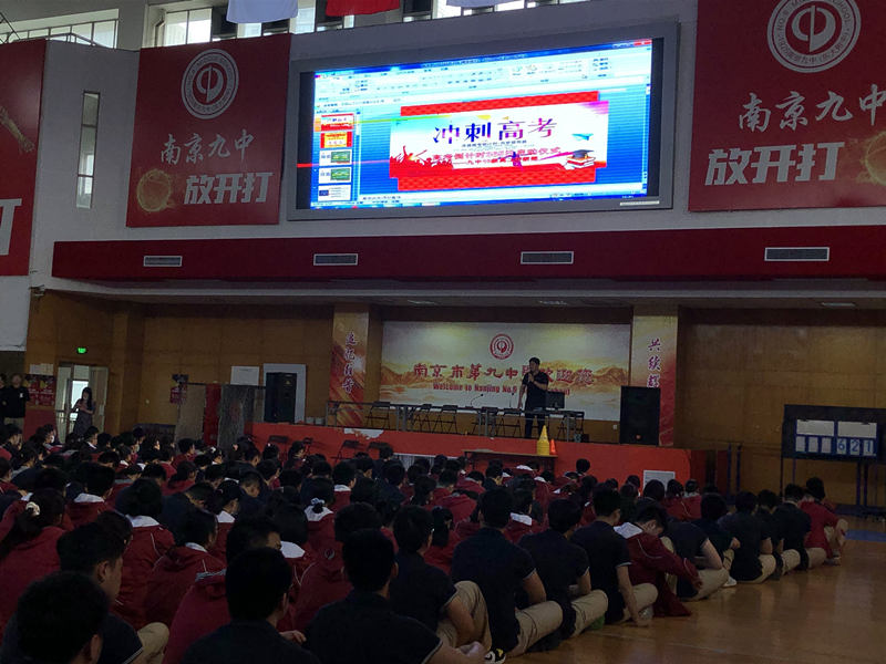 2020年6月8日下午第四节班会课,南京九中高二年级全体同学在体育馆三楼参加“高考倒计时365日”启动仪式,南京九中校长助理吴昊老师主持活动。他主要从时间管理,提高效率,心态调整三个方面对即将进入高三的同学们提出要求。