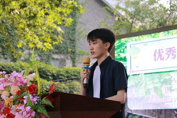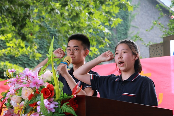 优秀毕业生代表马乐之同学在“励当下,砥砺奋进厚积薄发”的第二环节,用“莲花理论”为学弟学妹们最后30天的冲刺学习鼓劲打气,在这一学习阶段,毅力比运气和聪明更重要。文艺班同学一首《骄傲的少年》将大家再次拉回到网课期间的奋斗激情之中。随后各班班长及领誓人依次登上主席台,带领班级集体宣誓,同学们的誓言响彻校园。