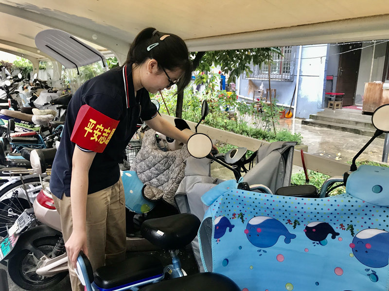 暑假期间,南京九中高二(13)班数十位学生来到孝陵卫街道小卫街社区,加入到志愿者队伍中,为居民服务。虽然近日南京连续多日高温降雨,但同学们仍按时到岗,无一缺席。