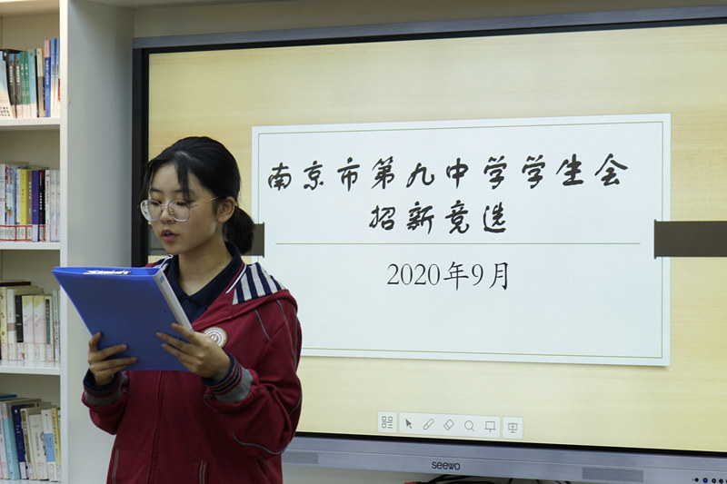 为了给同学们一个锻炼自我、展示自我的平台,充实学生会力量,保证学生工作良性可持续发展,2020年9月第三周,在团委陈乾老师的领导下,南京市第九中学面对新生的学生会招新活动如火如荼地展开。