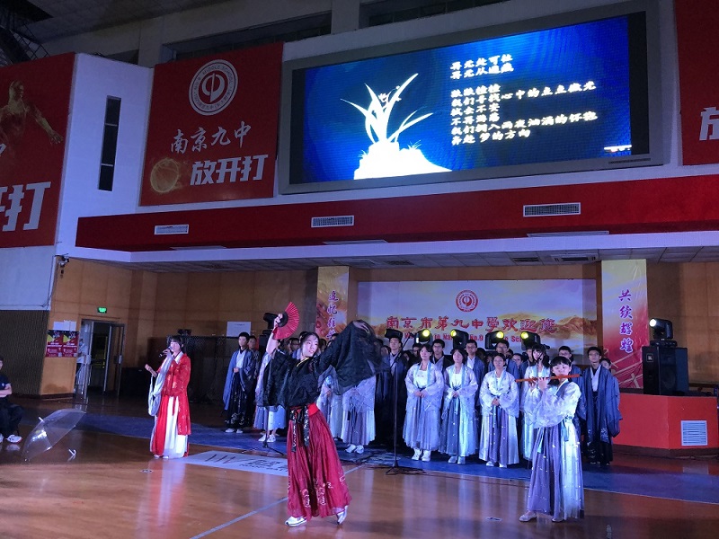 2020年9月17日17时17分,南京市第九中学在体育馆隆重举行以“诗言志,梦为马”为主题的金秋诗会。本次诗会旨在以诗载志,逐梦年少之时;以诵传情,共筑爱国理想。值此中秋来临之际,高一年级16个班济济一堂,共贺佳节。