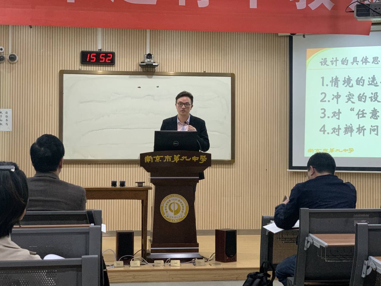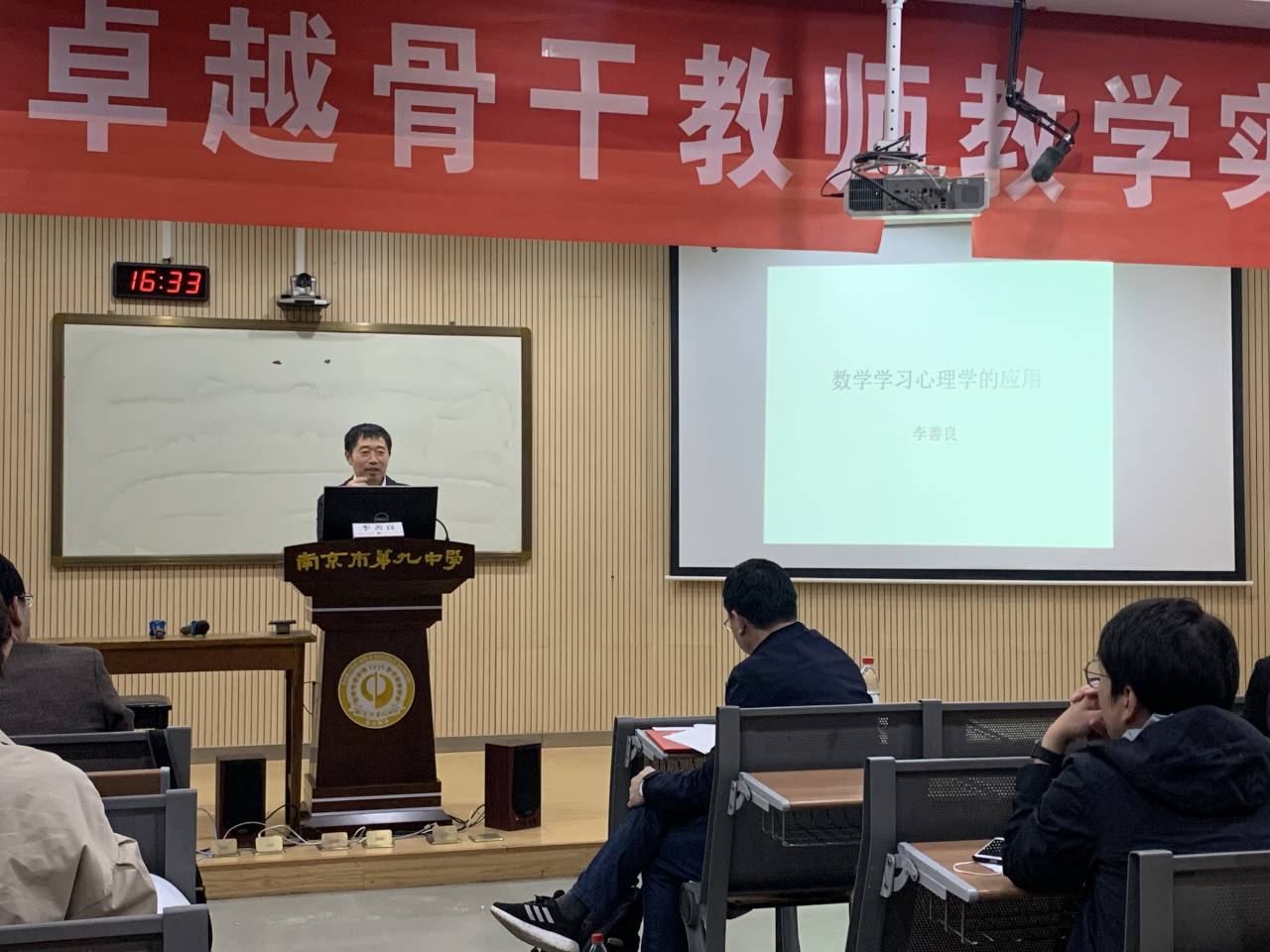 2020年10月20日南京市高中数学卓越骨干教师教学实践活动在南京市第九中学开展,参加活动的教学指导专家有省教研员李善良教授、市教研室龙艳文老师、南师附中特级教师刘明老师、南京市教培中心蔡欣主任、南京市高中数学中心组成员及我校数学老师。