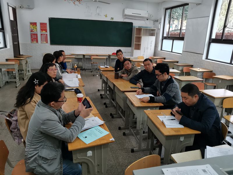 第三部分物理组进行组内研讨。当堂反馈练习的成绩反映了该节课极高的达成度,全组老师进行讨论,探讨在各年级实行该教学模式的可行性和操作流程。