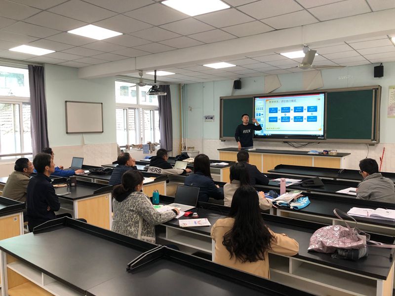 第一部分由高二备课组长蔡忠洋老师为九中物理组进行评价先行模式讲座,分享了高二备课组在备课、作业的编制与设计、课堂教学、作业的批改与反馈以及备战考试等环节的经验。