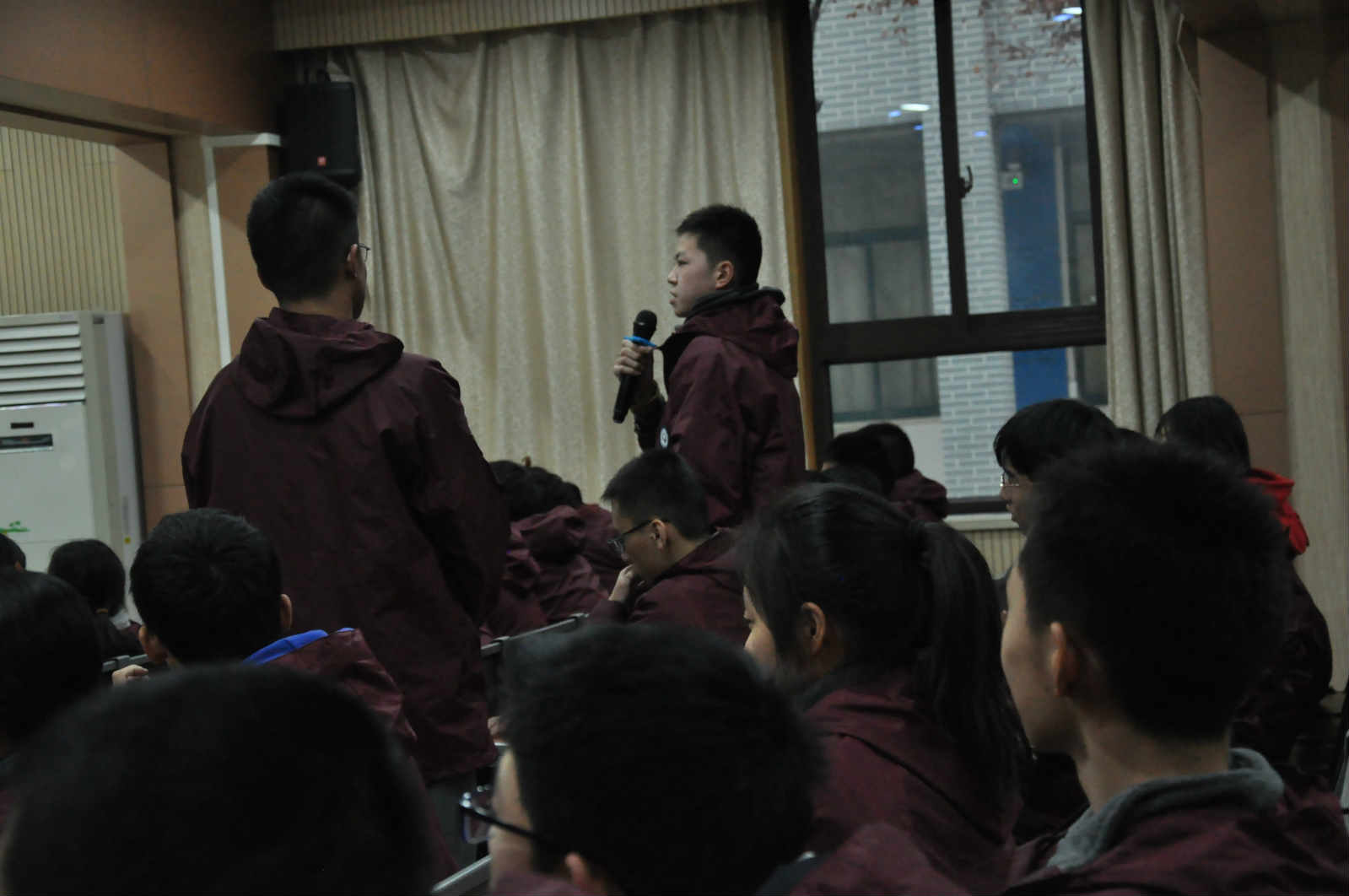 紧接着为大家展示的是高一(1)班,在班主任沈金花老师的组织下,该班级由两位同学主持以理想信念为主题的班会。整场班会,两位同学控场能力一流,问答的过程抛砖引玉。由于该班会主题要求与学科教育相融合,一班同学巧妙的用英文原声电影《阿甘正传》作为引入,通过小游戏让大家体会理想信念的重要性。班会课的最后,班主任沈金花老师做了总结。