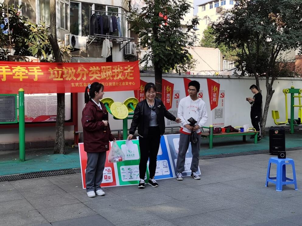 入贯彻落实习近平总书记关于推动垃圾分类工作的重要指示精神,强化教育的社会性作用,着力提高全体师生的垃圾分类和环保意识,让垃圾分类成为学校、家庭的新时尚,在玄武区教育的统一安排及新街口街道的大力支持下,南京市第九中学于2020年11月18日走近新街口社区,与其他学校联合开展“娜娜芬芬手牵手,垃圾分类跟我走”宣传教育特色活动。