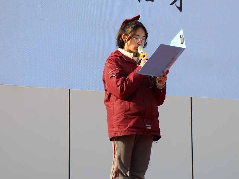 来自本周荣誉班级——高三(14)班的徐婕雅同学向大家介绍了自己的班集体及升旗手——柏钰涵。高三(14)班是一个团结友爱,积极向上的班集体。每一位同学都锐意进取,做到不待扬鞭自奋蹄。