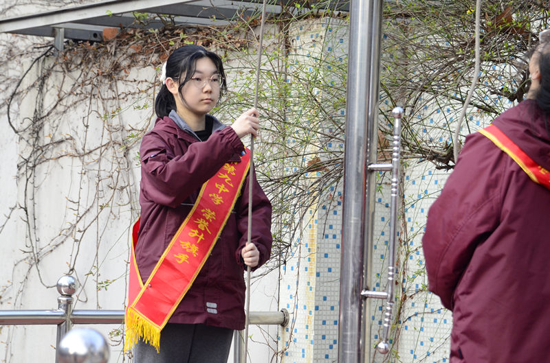2021年3月15日,南京市第九中学长江路校区举行“志愿者在行动”主题晨会,由全校师生参与。本周的升旗手是来自高一(1)班的王雨晨同学。