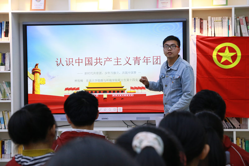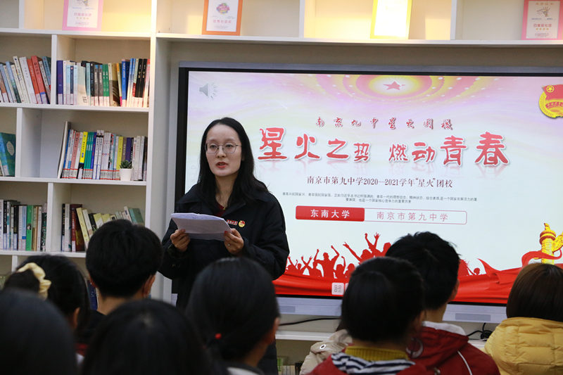 首先,东南大学能源与环境学院团委沈子婧书记为本次团课学员进行开班动员。然后,南京市第九中学党总支林啟红书记为“星火”团校东南大学筑梦辅导员代表颁发聘书。接着,高二(10)班张欣彤同学代表全体学员发言,讲述了自己的青春梦想和追梦路上的困惑,表达了对大学生对接中学团支部进行团建辅导的强烈诉求。最后,林啟红书记向同学们提出殷切期盼,只有加强对团史、党史、国史的学习,才能了解共青团、共产党和国家的苦难辉煌历程,才能明确党和国家未来的发展方向,凝聚实现“中国梦”的强大力量,正如九中团校名称“星火”一样,希望九中学子能以星火之势,燃动青春,为祖国的发展贡献出自己的一份力量,不负韶华,只争朝夕。
