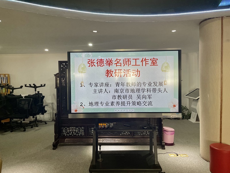 3月29日上午,“张德举名师工作室”在南京市第九中学尚美厅举办了以“青年教师的专业发展”为主题的专题研讨活动,南京市第九中学校长亲临现场指导研讨活动,名师工作室领衔人——地理特级教师张德举老师、南京市地理教研员吴向军老师、第九中学地理教研组长丁翼飞老师,和学校部分青年教师参与了本次主题教研活动。活动由名师工作室成员、第九中学地理教研组长丁翼飞老师主持。