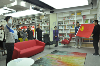 然后,在庄严的仪式中,青年教师们高举右拳,在鲜艳的团旗下庄严宣读入团誓词,铿锵有力的誓词回荡在现场每一位教师心中。