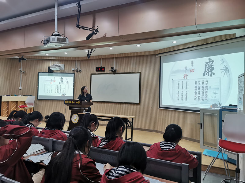 为宣扬“廉洁为宣扬“廉洁文化”和“廉政建设”的理念,使我校学生了解什么是廉洁文化,作为党员与团员如何将廉正之风吹入校园,来共同推进党风廉正建设。2021年5月17日下午4:30-5:20,南京市玄武区人民法院法官助理王婵来我校开设讲座《廉洁进校园、践行社会主义核心价值观》。