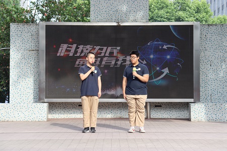 2021年6月1日,南京市第九中学长江路校区举行“科技为民,奋斗有我”主题教育活动。科技引领生活,创新驱动发展。去年我校成功申报了南京市中学生科技创新星光基地学校。前不久,我校开展的纸船载重比赛也荣幸登上了“学习强国”专栏。九中科创中心成员,高二的王彦棠同学和沈中元同学自编自演一段相声,通过列举开源硬件的开发、仿生机器人的搭建等实例,向高一高二全体师生展现了科技人的趣闻轶事和精神风貌。