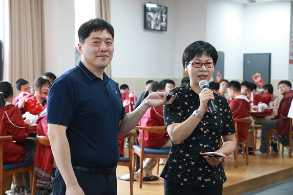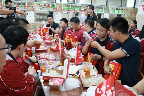 在高三年级部主任、校务委员吴昊老师的主持下,必胜餐厅正式“开张”啦!林啟红校长代表学校向同学们表达了真诚的祝福,为同学们一直以来的拼搏精神点赞,祝愿同学们金榜题名,梦圆九中。吴昊校长代表高三年级部为即将走上高考考场的同学们加油鼓劲,祝各位必胜客们出战必胜。还有来自中国国药科大学、南京医科大学、南京师范大学等知名大学的毕业生回母校为同学们送上祝福。同学们备受鼓舞,感恩有一路无私奉献的老师,有一众一起拼搏的战友。