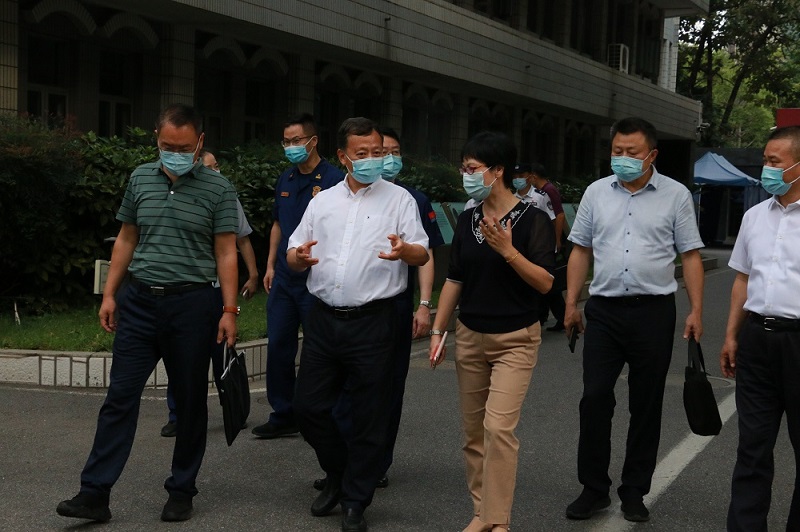 负责同志一行,到第九中学视察平安校园建设工作。