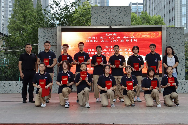 南京市第九中学副校长王艳飞老师宣读了本届学生会成员名单,并与南京市第九中学副校长吴昊老师一起为新一届学生会成员颁发聘书。