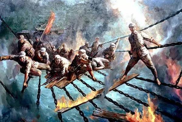 22名战士踩着13根铁索,如神兵天降,突破了大渡河天险;