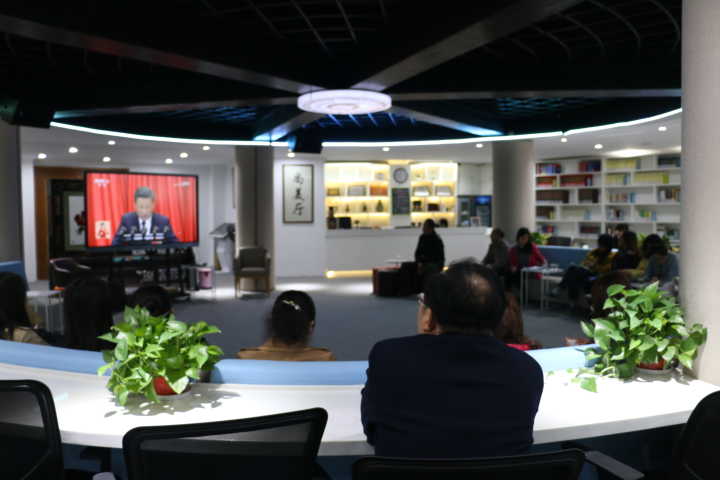 10月18日上午9:00,南京市第九中学组织党员在学校尚美厅观看 了“中国共产党第十九大全国代表大会”开幕式的现场直播,我校党总支书记张恒柱同志也参加并观看了开幕式。