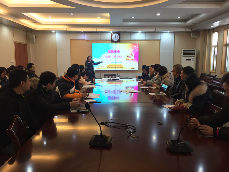 习近平总书记在党的十九大报告中指出,没有高度的文化自信,没有文化的繁荣兴盛,就没有中华民族伟大复兴。文化自信是一个民族强大的精神指引,文化兴则国运兴,文化强则民族强。在基础教育阶段,要着力加强人才培养中的中华优秀传统文化及社会主义核心价值观的融入教育。从娃娃抓起,深入挖掘中华优秀传统文化蕴含的思想观念、人文精神、道德规范,结合时代要求继承创新,让中华文化展现出永久魅力和时代风采。高二党支部开设党课《在教学中弘扬传统数学文化》,高三党支部开设党课《在教学中弘扬中国文化》,两次党课,让一线的党员教师学习并思考如何在各自的教学实践中弘扬我们中国优秀的传统文化。