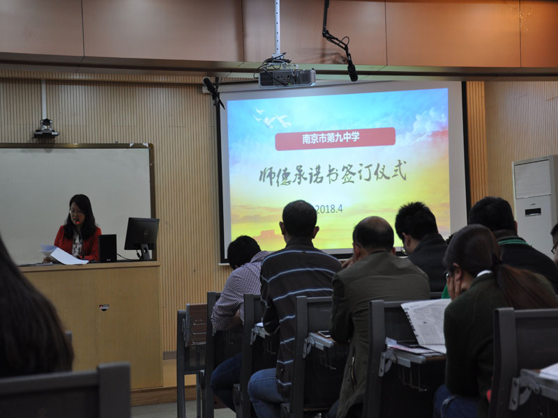为深入贯彻党的十九大精神,加强师德师风建设,规范教师的职业道德,提升师德师风素养,打造一支品德高尚、作风过硬、业务精湛的教师队伍。4月18日下午,南京市第九中学党总支举行师德承诺书签订仪式,每一位教师认真学习领会师德承诺书的内容,全体教师签订师德承诺书。