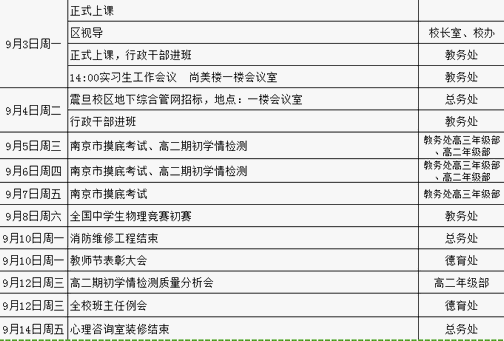 2019-2020学年第一学期期末行事历(18、19、20周)