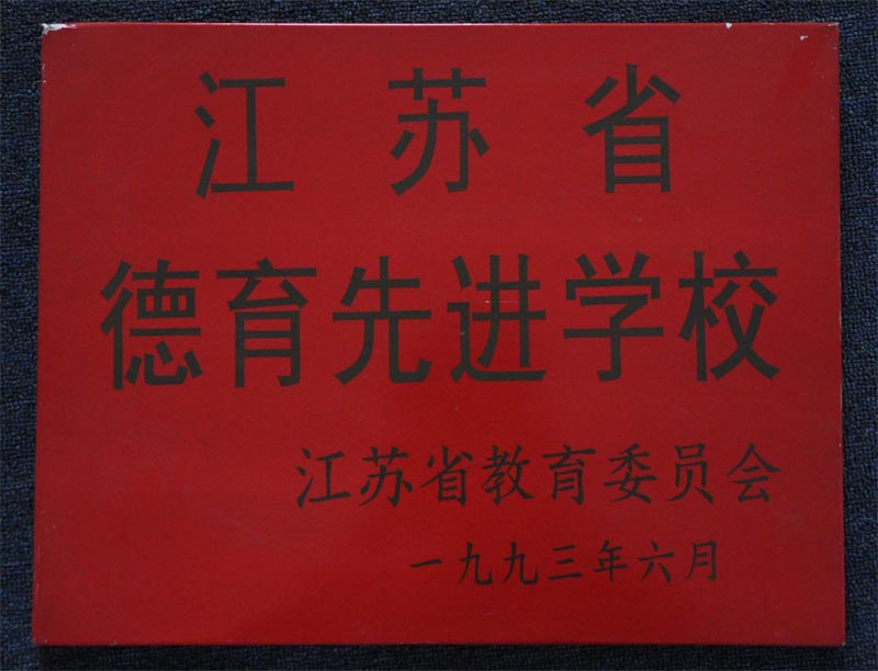 名称:江苏省德育先进学校1993
